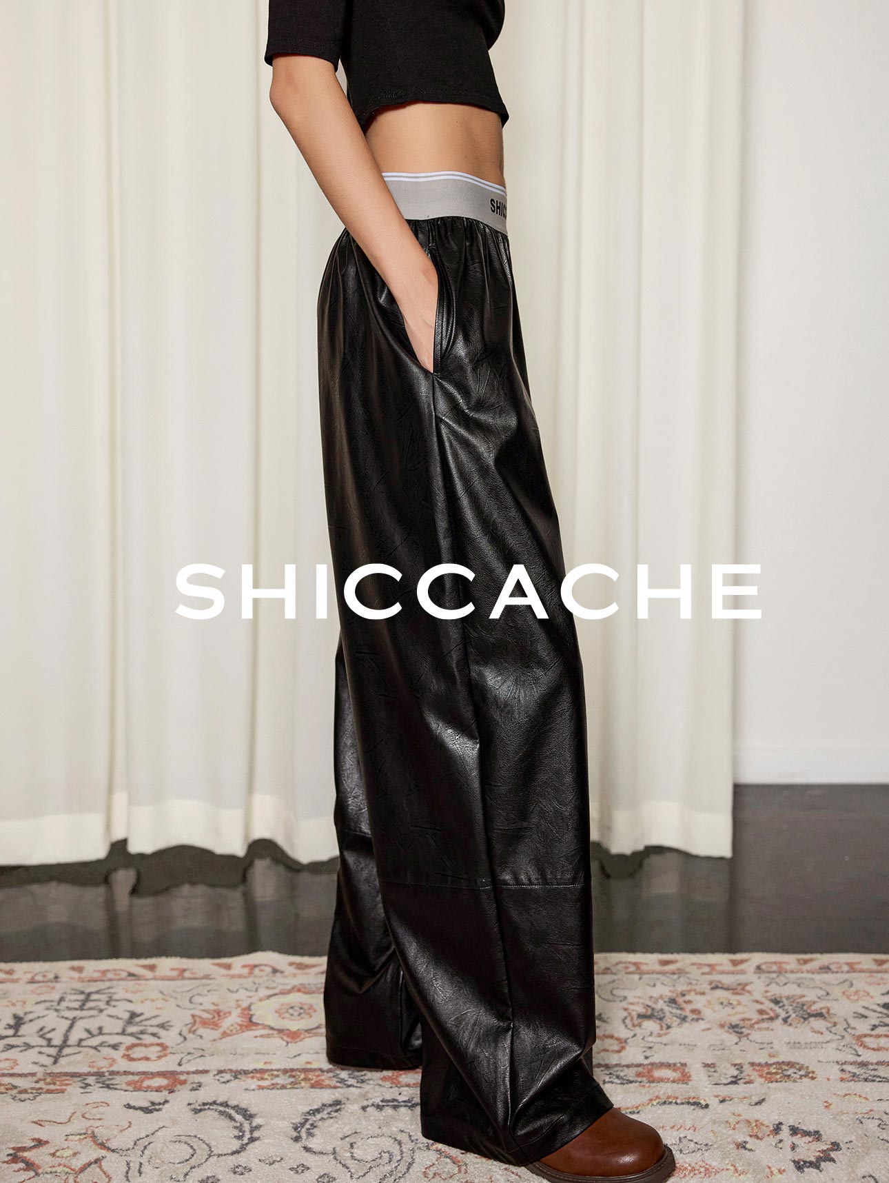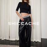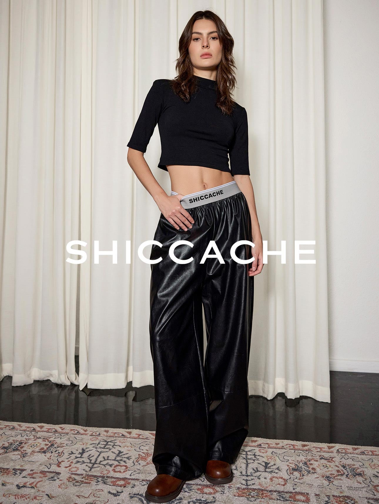 These wide-leg faux leather pants feature a sporty elastic waistband and a relaxed drape, blending sleek cool-girl energy with everyday ease.